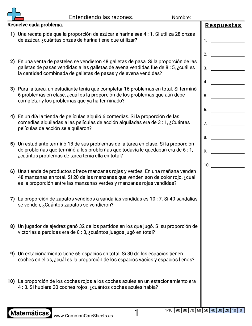 Hojas de trabajo gratis de math para 6to Grado (6rp3c) sobre Entendiendo las razones.. Cada hoja tiene 10 ejercicios con hoja de respuestas y es ideal para maestros y educación en casa. Puedes descargar el PDF, crear tarjetas de memoria o configurarlo para aprendizaje en línea.